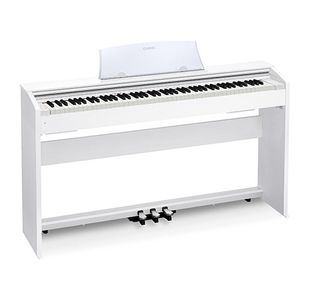 Pensé pour séduire les musiciens de tous niveaux, le piano numérique PX-770WE de Casio saura avant tout se démarquer grâce à ses qualités sonores et à ses touches sensibles à la vélocité. Recouvertes d’un ivoire et d'un ébène de synthèse, ces dernières offrent un confort de jeu indéniable. Présenté en blanc, le piano numérique PX-770WE de Casio possède une sortie casque pour jouer en toute discrétion et est doté du mode Concert Play, une fonction permettant de jouer avec l’un des dix accompagnements orchestraux disponibles sur l’instrument.